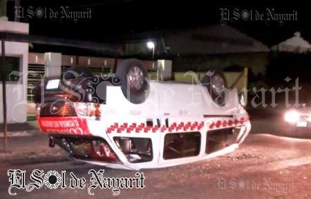 Los hechos se registraron poco después de las 7:00 de la tarde de este domingo cuando el chofer de una combi circulaba sobre calle Industriales Nayaritas y al llegar a la altura de la empresa NAYMEX la unidad paso por encima de una alcantarilla que se encontraba abierta lo que al parecer provocó que volcara.