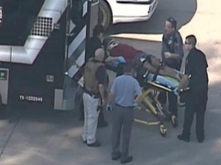 El atacante fue llevado esposado a una camilla, mientras que elementos policiacos trataban de ubicar a un supuesto segundo atacante, el que al parecer, se dio a la fuga.