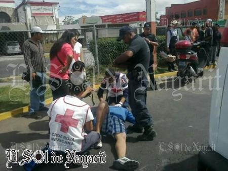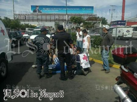 Aproximadamente a las 11:30 de la mañana de este jueves se registró un accidente de tránsito donde resultó lesionado un hombre que conducía una motocicleta sobre Av. Insurgentes, mientras que el responsable se daba a la fuga a bordo de un vehículo Corsa que está registrado al parecer a nombre de una ex Regidora de Tepic.