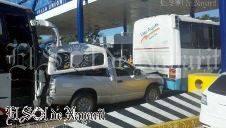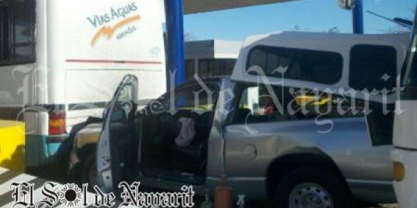 Cerca de las ocho de la mañana de este martes, se registró un accidente en la autopista Tepic-Crucero de San Blas, a la altura de la caseta Trapichillo. Donde un autobús se impactó contra una camioneta al quedarse sin frenos.