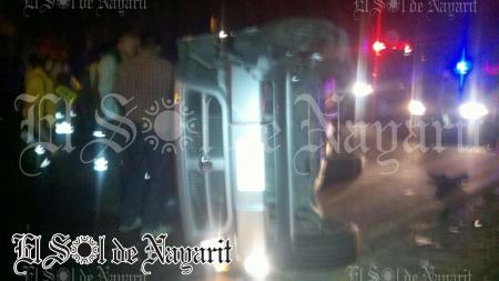 Un fuerte accidente de tránsito se registró la mañana de este sábado en Boulevard Tepic-Xalisco, donde una camioneta volcó.