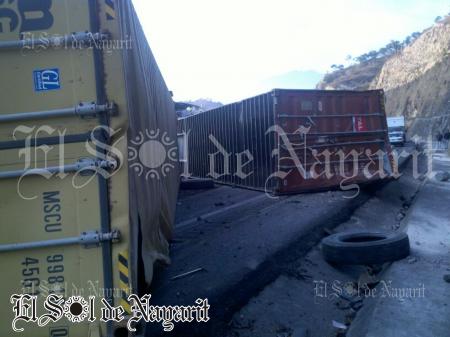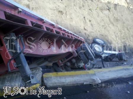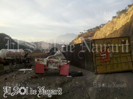 El tráiler que continuó su marcha, ya sin conductor, se impactó contra un paredón, continuando su camino y terminado por estrellarse contra el muro de contención de la autopista, bloqueando totalmente el paso vehicular del carril hacia Tepic.