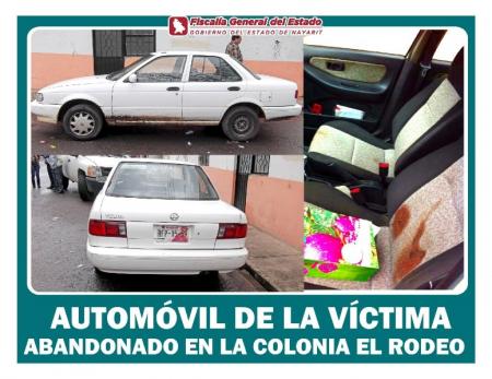El auto de la víctima de la marca Nissan, tipo Tsuru, con placas de circulación del estado de Nayarit, color blanco, fue abandonado por Erick Alexis en la colonia El Rodeo de Tepic, la misma noche en que ocurrieron los hechos.