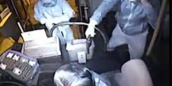 Ha sido compartido un video tomado por la cámara de seguridad de un autobús, el cual capturó el momento en el que un chofer se enfrenta a dos asaltantes, estando uno de ellos armado.