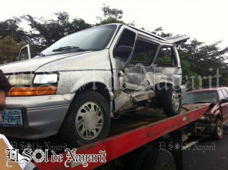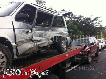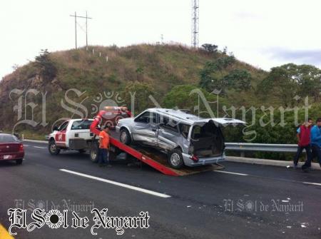 Aproximadamente a la 1 de la tarde de este miércoles se registró un aparatoso accidente sobre la Autopista Tepic-Crucero de San Blas, en el que una camioneta Ford tipo Explorer color rojo impactó a una camioneta Caravan a la altura del kilómetro 6+800, percance que arrojó 7 lesionados de gravedad.