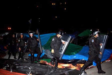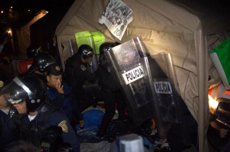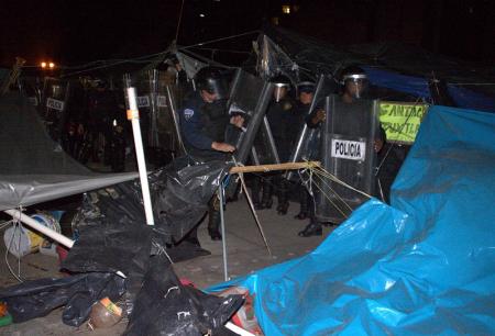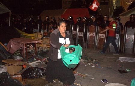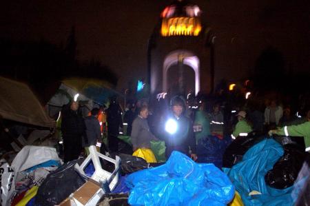 La orden del Gobierno del Distrito Federal a los agentes de seguridad es la de retirar las tiendas y los materiales utilizados en el campamento que permanecía en la zona desde septiembre.