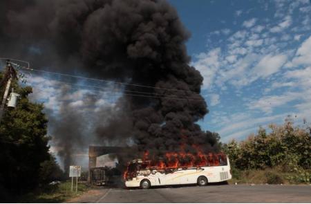 Al menos tres vehículos fueron incendiados, de nueva cuenta, en la carretera Cuatro Caminos-Apatzingán, a la altura del municipio de Parácuaro, por manifestantes que han mostrado su rechazo a la presencia de autodefensas, además de que insisten en la liberación de 11 policías municipales retenidos desde el sábado pasado.