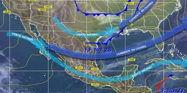 La masa de aire frío que generó al frente frío número 28 causará clima muy frío este fin de semana en gran parte del país, en el día las temperaturas tendrán un gradual ascenso; en el Istmo y Golfo de Tehuantepec el viento será del norte, con velocidades de 30 a 45 kilómetros por hora y rachas de hasta 70 kilómetros.
