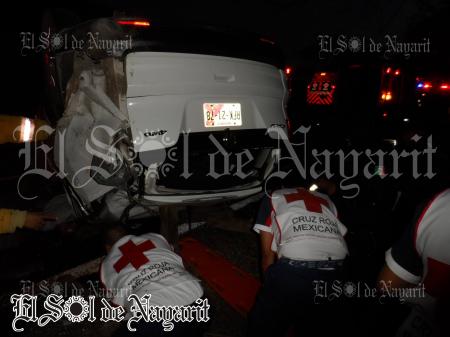 Los Servicios de Emergencias de inmediato acudieron al kilómetro No. 21, cerca del poblado Jesús María Corte, encontrando una terrible escena, pues los pasajeros de una camioneta CRV color blanco con placas RFK-21-78 del estado de Nayarit, se encontraban efectivamente prensados al interior de la unidad.