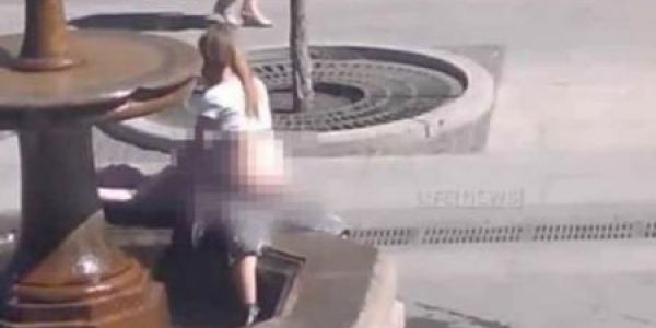 El video muestra a la mujer encima del hombre, que está tendido sobre la fuente, ambos con sus pantalones bajos y realizando movimientos explícitamente sexuales como si fuese la cosa más normal del mundo, mientras la gente pasa por la calle.