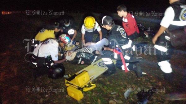 Continúan los accidentes en motocicletas, ahora un joven perdió el control impactándose contra un árbol, quedando severamente lesionado.