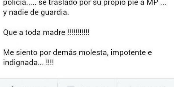 La mujer fue por su propio pie ante las oficinas del agente del ministerio público a fin de poner la denuncia correspondiente, pero lamentablemente la oficina se encontraba sola, por lo que no le fue posible siquiera levantar la denuncia.