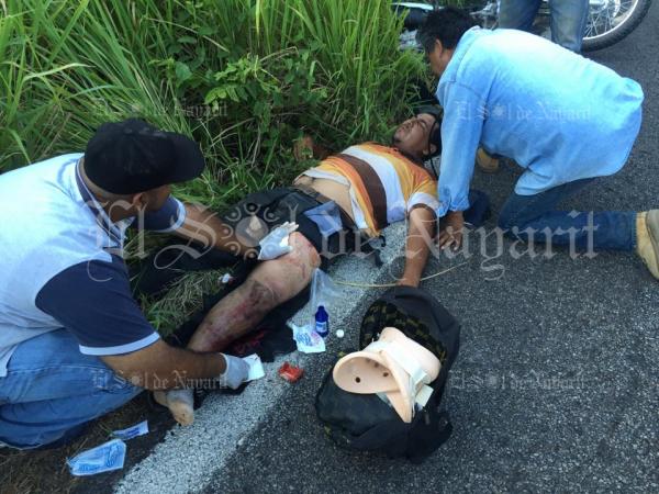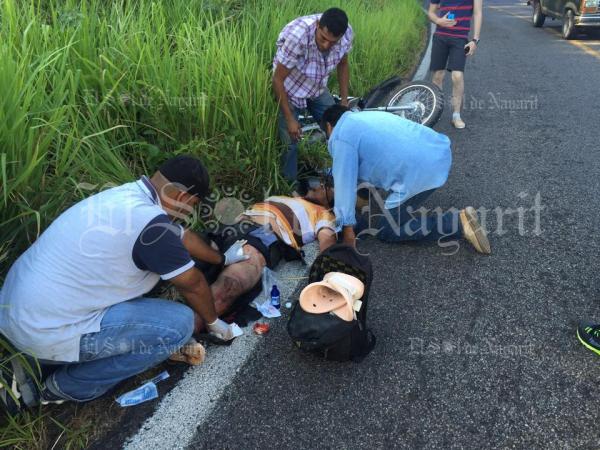 El motociclista, quien iba rumbo a San Blas después de trabajar en la CFE, no pudo dar su versión de lo ocurrido, ya que se encontraba seriamente golpeado, pero tuvo la fortuna de que tan sólo unos instantes después del accidente pasaran por el lugar dos hombres que tienen amplia experiencia en primeros auxilios, e incluso llevaban su propio material, que implementaron para auxiliar al joven lesionado.
