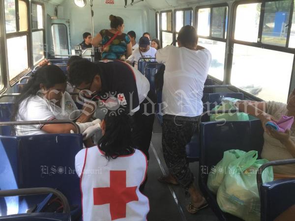 Al frenar, una de las pasajeras del urbano se golpeó contra un asiento y tuvo que ser atendida por paramédicos de la Cruz Roja, quienes rápidamente arribaron al lugar tras recibir el reporte.