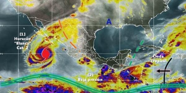 El huracán Blanca sigue debilitándose y bajó a categoría 1, se desplaza hacia el nor-noroeste, rumbo al sur de la Península de Baja California, lo que genera oleaje elevado en el sur de Baja California Sur, informó el Servicio Meteorológico Nacional (SMN).