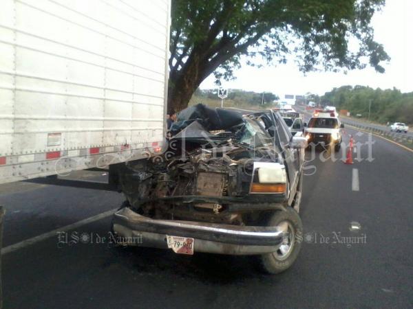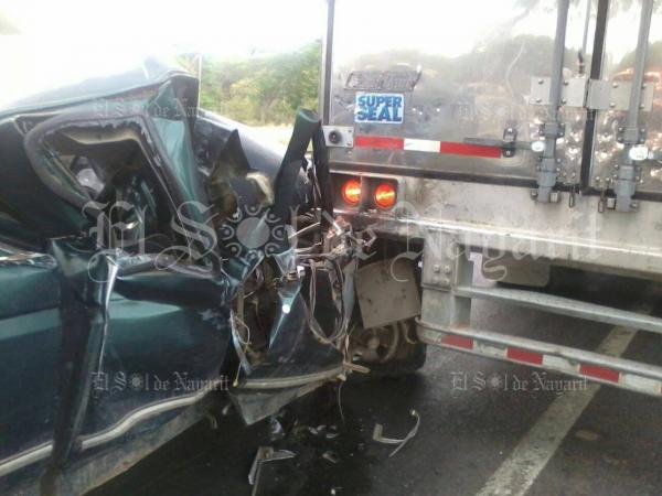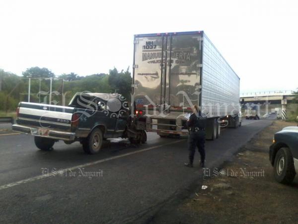 El percance ocurrió a la altura del crucero de San Blas, con sentido de Mazatlán hacia Tepic, donde elementos policiacos y del heroico cuerpo de bomberos se encontraron con una camioneta Ford tipo Ranger color verde, impactada contra la caja de una tráiler.