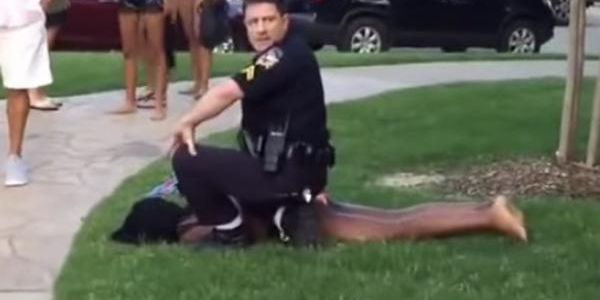 El oficial blanco, cuya identidad no ha sido revelada, grita una serie de palabras altisonantes a los jóvenes, para después ordenarles que se recuesten boca abajo en el suelo, acto seguido, tira a la joven afroamericana y la sujeta, mientras desenfunda su arma ante la posible intervención de otros dos jóvenes afroamericanos.