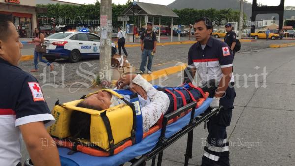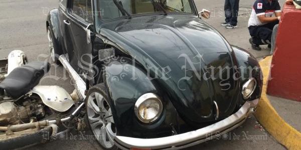 Elementos de Vialidad Tepic arribaron al lugar para tomar nota de los hechos, donde el motociclista y su acompañante resultaron lesionados.