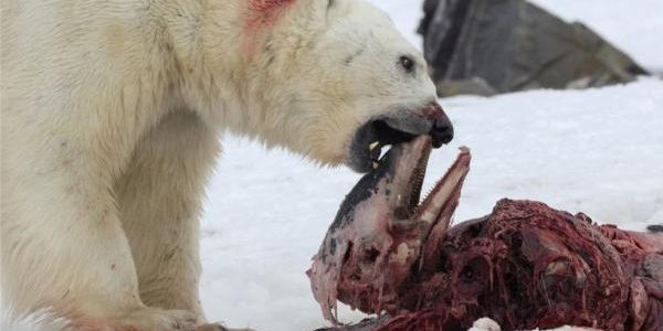 La primera fotografía que evidencia el suceso se tomó en abril del año pasado y durante todo el verano y otoño de 2014 se observaron hasta a seis osos polares comiendo carne de delfines de pico blanco.