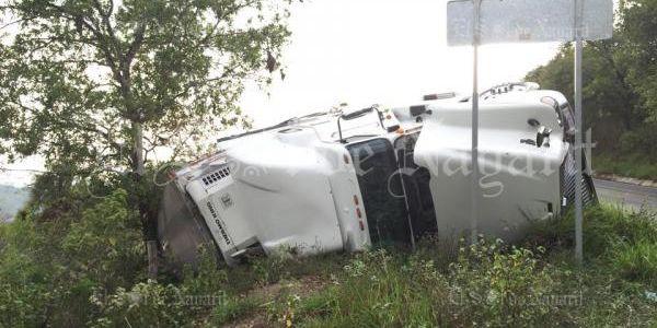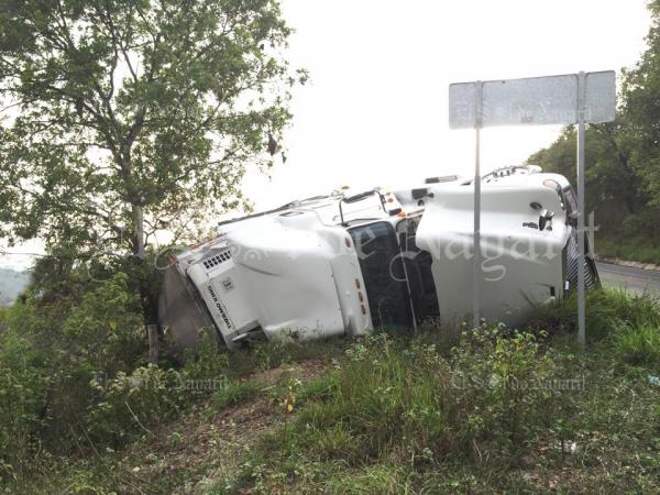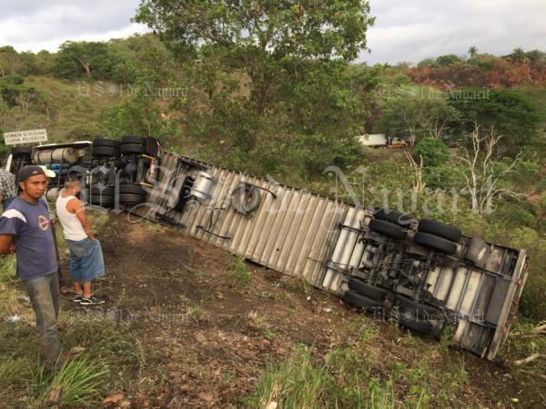 Poco antes de las 6:00 de la tarde de este domingo se registró una aparatosa volcadura de un tráiler en la carretera libre Tepic-Mazatlán.