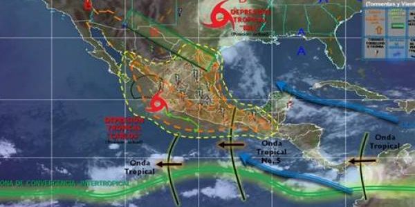 El Servicio Meteorológico Nacional (SMN) informó en su último reporte la presencia de la Depresión Tropical Carlos que se localiza muy cerca de la línea de costa de Jalisco, a las 13:00 se localizó aproximadamente a 20 km al sur de Playa Las Peñitas, Jal. y a 55 km al sur de Cabo Corrientes, Jal.