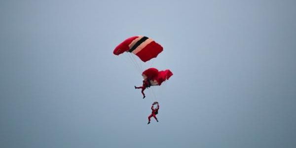 Un milagroso salto de paracaídas tuvo lugar durante una festividad organizada en la localidad de whitehaven, en Cumbria, al noroeste de Inglaterra, donde un miembro de la unidad de acrobacias del Ejercito Británico conocida como los Diablos Rojos salvó a uno de sus compañeros a quien le falló el paracaídas en pleno salto.