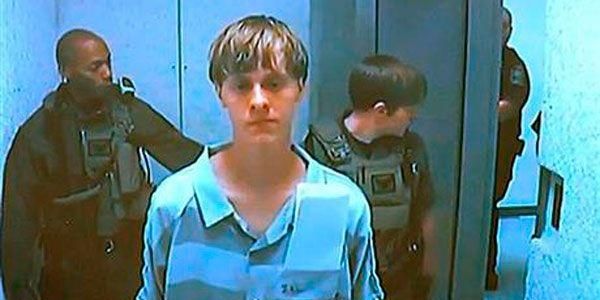Esposado, vistiendo un traje de prisionero a rayas, mirando ocasionalmente hacia la cámara y sin mostrar emoción alguna, Roof permaneció de pie en un pequeño cuarto sin ventanas, resguardo por dos oficiales policíacos en trajes antimotín.