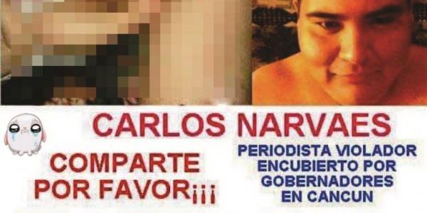 En las redes sociales se ha viralizado la imagen donde se acusa a Carlos Narváez de ser pedófilo, igualmente en la imagen se señala que es periodista y protegido de gobernadores en Cancún.