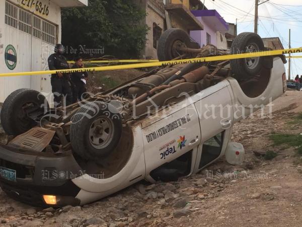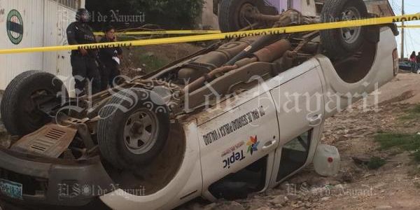 La tarde de este martes una camioneta del Ayuntamiento de Tepic, sufrió un accidente y terminó volcándose en la colonia Lomas de la Laguna.