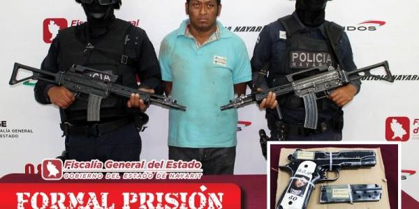 Fiscalía del Estado informó que el Juez Cuarto de primera instancia del ramo penal con sede en Tepic, dictó auto de Formal Prisión en contra de un sujeto por los delitos de Privación de Arma Prohibida y Portación de Arma Prohibida.