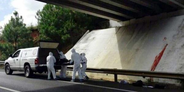 Los cadáveres de las víctimas estaban sujetos por una cuerda y colgaban de un puente ubicado cerca del kilómetro 190+100 de esa autopista.
