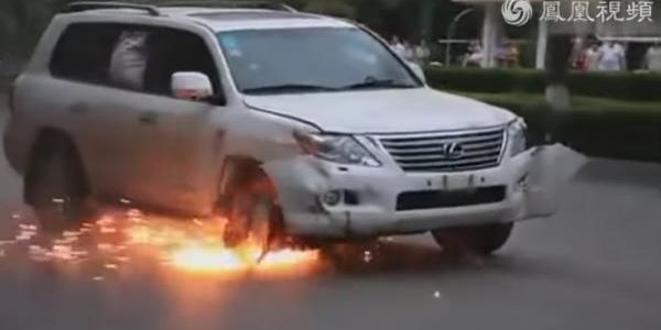 El sujeto atropelló a uno de los peatones que le impedían el paso y después aceleró para escapar, pero media hora después se impactó contra un monumento de la ciudad Yinchuan, en China.