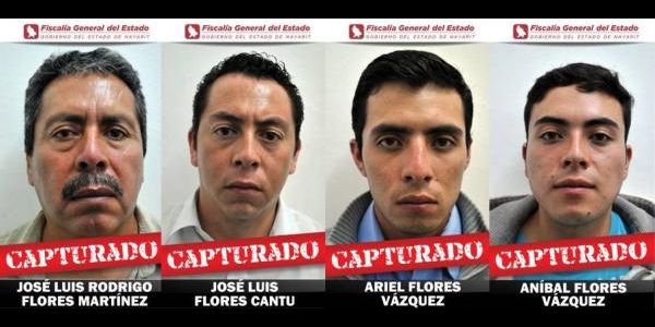 José Luis Flores Cantú, de 28 años de edad; José Luis Rodríguez Flores Martínez, de 53 años de edad; Anibal Flores Velázquez, de 19 años de edad, y Ariel Flores Vázquez, de 20 años de edad; todos originarios del Estado de México.