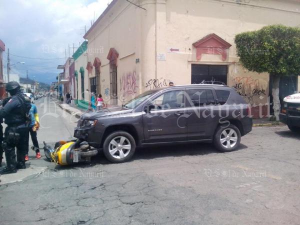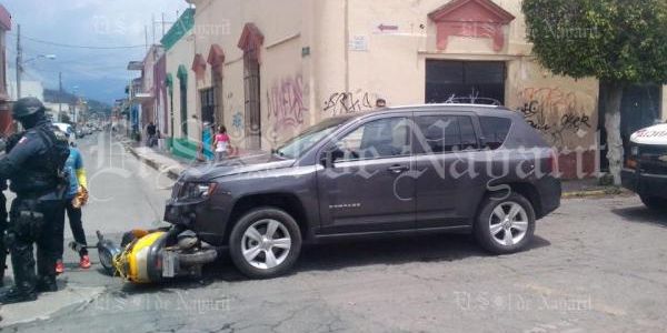 Poco después de las 14:00 horas de este jueves un motociclista ocasionó un accidente en calles del centro de Tepic, justo en el cruce de las calles Lerdo y Ures.