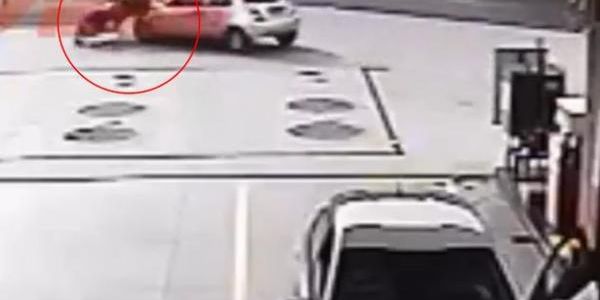Un intrépido conductor evitó que un sujeto que acababa de asaltar una tienda de autoservicio se diera a la fuga embistiéndolo con su automóvil.