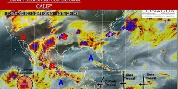 El Meteorológico informó que la zona de inestabilidad, ubicada sobre el suroeste de las costas de Baja California Sur, mantiene 80 por ciento de probabilidad para desarrollo ciclónico en las próximas 48 horas.