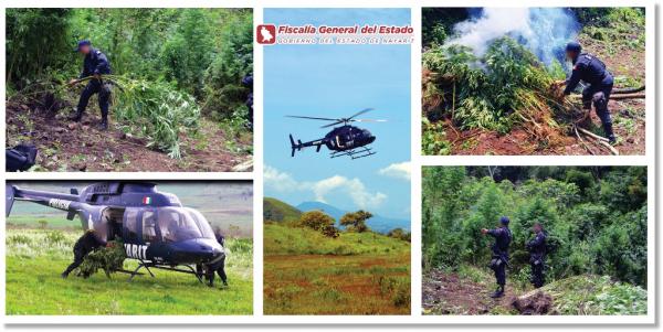La detección de los plantíos de marihuana, se logró gracias a patrullajes y sobrevuelos realizados por el helicóptero Apache. En este operativo participaron 60 elementos de la Policía Nayarit y elementos de la Policía Federal.