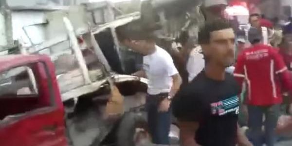 En el video difundido en YouTube por LasNoticiasYa Com, se observa a decenas de personas tiradas en el piso, cubiertas de tierra y ensangrentadas; algunas se encuentran sin vida y otras no. Al fondo se escuchan gritos y lamentos.