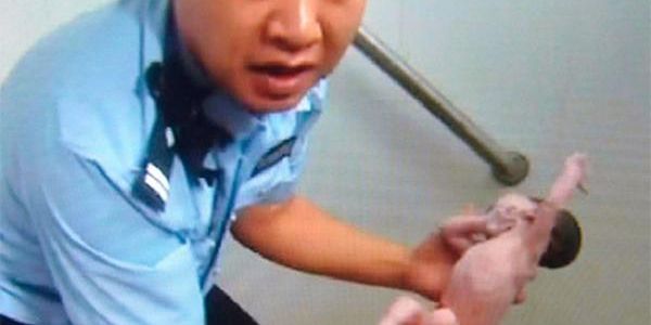 En las imágenes publicadas por la policía se observa al agente Qian, de cuclillas frente al retrete incrustado en el suelo, al momento de sacar a la bebé agarrándola por las piernas con la mano derecha, para que después los residentes que aguardaban cerca acercasen toallas y mantas con las que proteger a la niña.