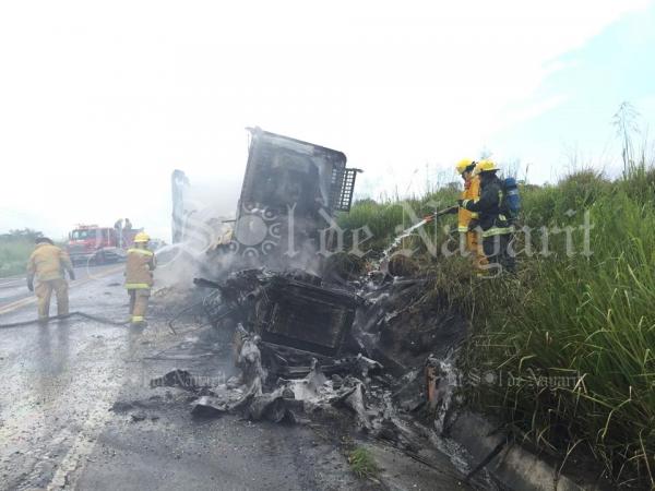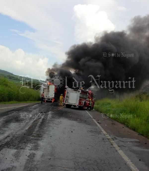 Elementos de la Policía Municipal, Policía Nayarit, Policía Federal y Bomberos de inmediato hicieron acto de presencia en el lugar para sofocar las llamas y brindar los primeros auxilios a los involucrados.