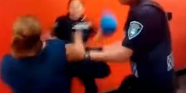 Diversos videos del incidente fueron publicados en redes sociales y en uno se observa cuando los vendedores agreden a los agentes, echándoles agua en el rostro, jalándoles y dándoles de manotazos.