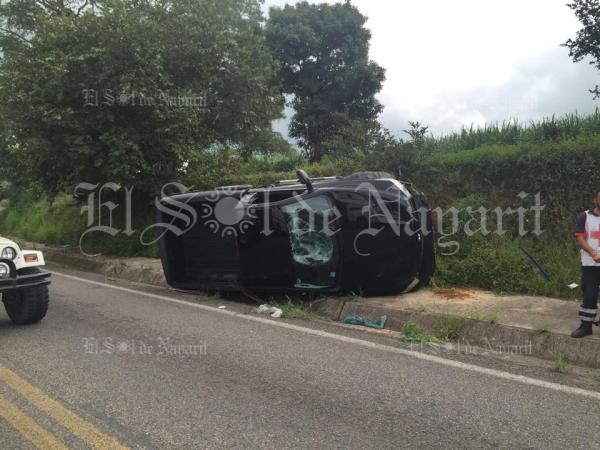 Un accidente automovilístico ocurrió la tarde de este sábado, cuando una camioneta terminó volcada sobre la carretera Tepic-Puerto Vallarta.
