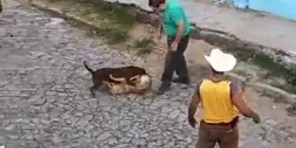 José Salvador Rodríguez grabó desde su vivienda el momento en el que dos sujetos caminan por la calle junto a un perro, al parecer de raza pitbull, con la intención de herir a una perrita.