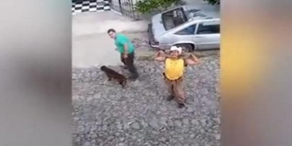 El usuario José Salvador Rodríguez Ramírez, a través de su cuenta de Facebook, muestra el momento en el que dos sujetos, acompañados de un perro de la raza pitbull, golpean brutalmente a una perra en situación de calle en la Colonia El Vergel, Tlaquepaque, Jalisco.
