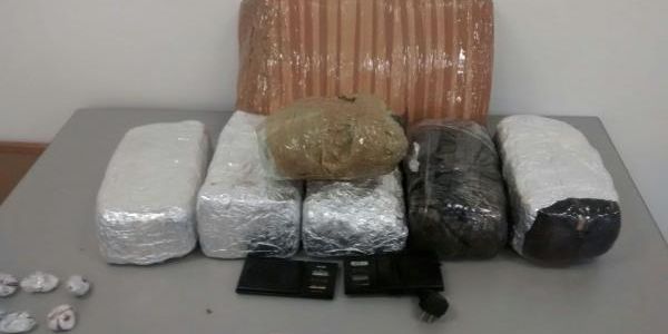 Al momento de su detención, les fueron asegurados 96 gramos de la droga conocida como cristal, 17 kilogramos de marihuana y una báscula gramera.