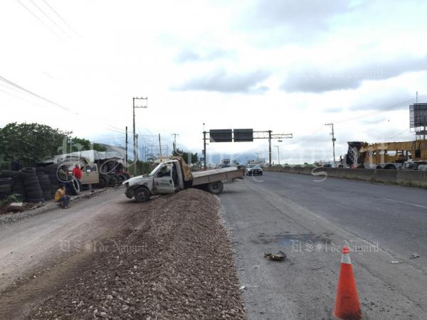 La camioneta, que de acuerdo a la información, al parecer invadió el carril del tráiler, pertenece a la empresa Cementos Tolteca y debido al impacto terminó atravesada fuera de la cinta asfáltica.