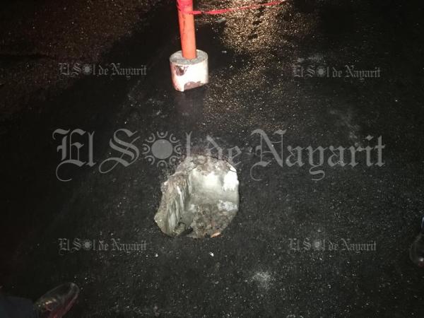 Protección Civil se dio a la tarea de colocar el debido señalamiento para que el bache no ocasione otro accidente de este tipo.