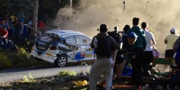 Durante un rally un automóvil que participaba se salió de la carretera y atropelló a un grupo de espectadores.