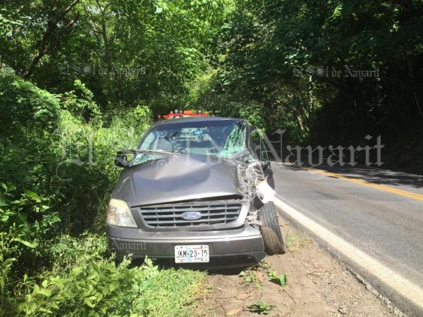 El autobús transitaba con sentido a Vallarta y al salir una curva, invadió el carril contrario, por lo que terminó impactándose contra el costado izquierdo de una camioneta Toyota color gris.