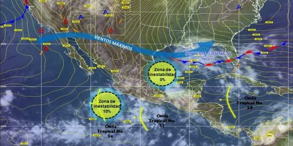 La zona de inestabilidad presenta 10 por ciento de potencial para el desarrollo ciclónico en las próximas 48 horas y 30 por ciento para las próximas 120 horas.